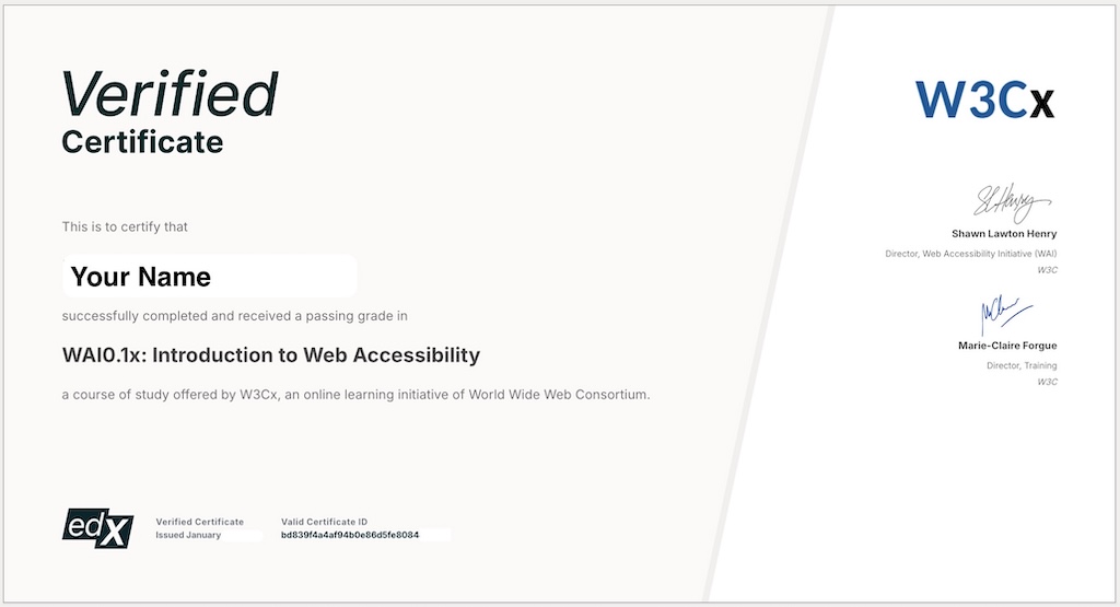 (For information about edX certificate verification and accessibility, see: edX Help Center Accessibility pages.)